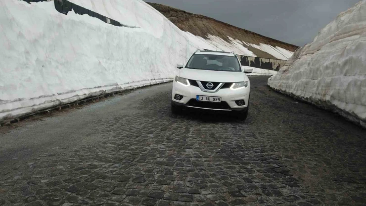 Bitlis'in Tatvan ilçesindeki Nemrut Dağı yolunda Mayıs ayına rağmen hala 5 metreyi bulan kar tünelleri bulunuyor.