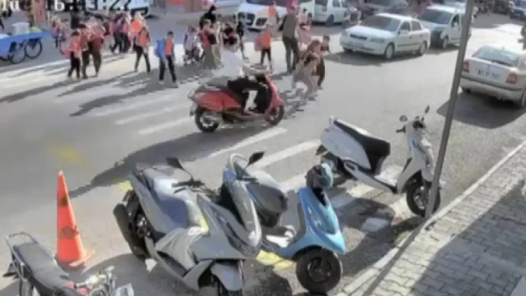 Okuldan çıkan çocuklara motosiklet çarptı, kaza anı kameraya yansıdı
