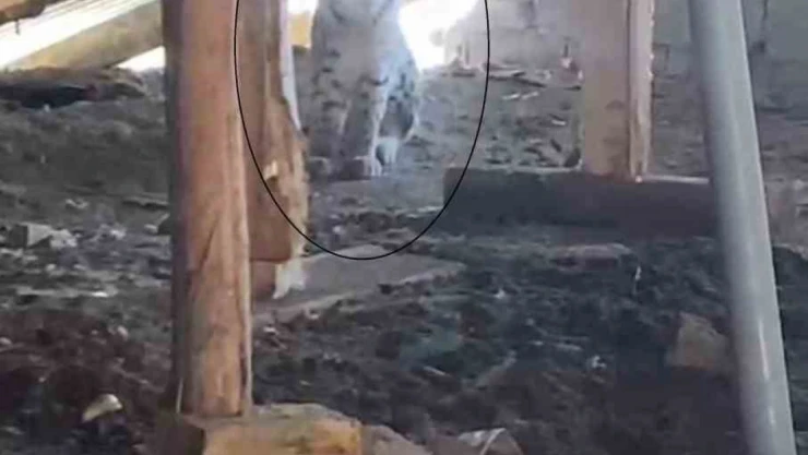 Sivas’ın Zara ilçesinde Ormanın hayaleti olarak bilinen vaşak, bir ahırın çatı arasında görüntülendi.