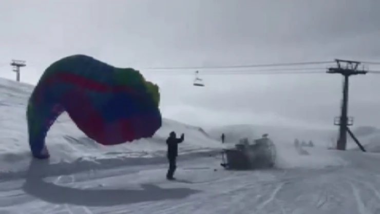 Erzincan'daki Ergan Dağı Kayak Merkezi'nde yamaç paraşütü yapan Hasan Kaval, önceki gün özel hazırladığı düzenekle paraşüte bağladığı masada, arkadaşıyla birlikte gökyüzünde kahvaltı yaptı. İkinci gösterisi olan çift katlı ranzayla yamaç paraşütü yapmaya çalışırken yere çakılan paraşütçü, ölümden döndü.