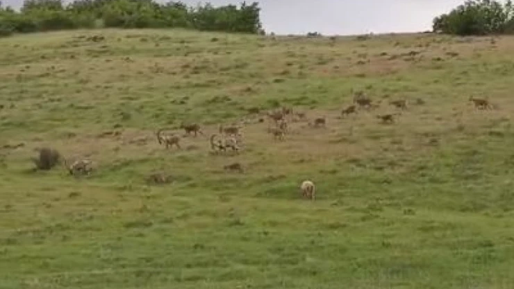 Son dönemde, popülasyonundaki artış ile dikkat çeken dağ keçileri, sürü halinde otlanırken görüntülendi.