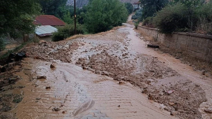 Sivas’ın Gürün ilçesinde yaşanan sağanak yağışın sonrası bir köyü sel bastı.