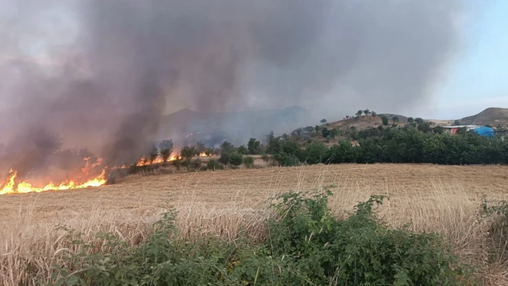 Adıyaman'da meydana gelen anız yangının saman balyalarına sıçraması sonrası civarda bulunan büyükbaş hayvanlar tahliye edildi.