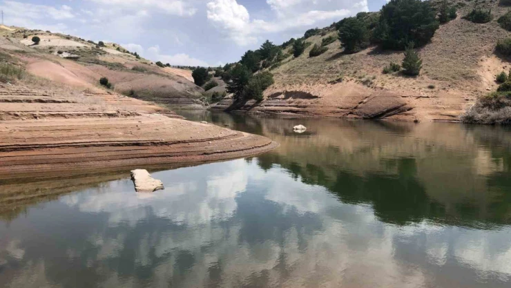Sarıkamış’ta bulutların suya yansımasıyla ortaya çıkan görüntü görenleri büyülerken, çekilen baraj suyu ise dikkat çekti.