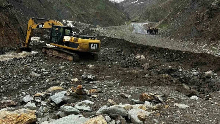 Muş'ta sağanak yağış sonrası yaşanan sel nedeniyle köy yolu ikiye ayrılırken, İl Özel İdaresi ve sağlık ekipleri doğum sancısı başlayan kadına ulaşmak için seferber oldu.