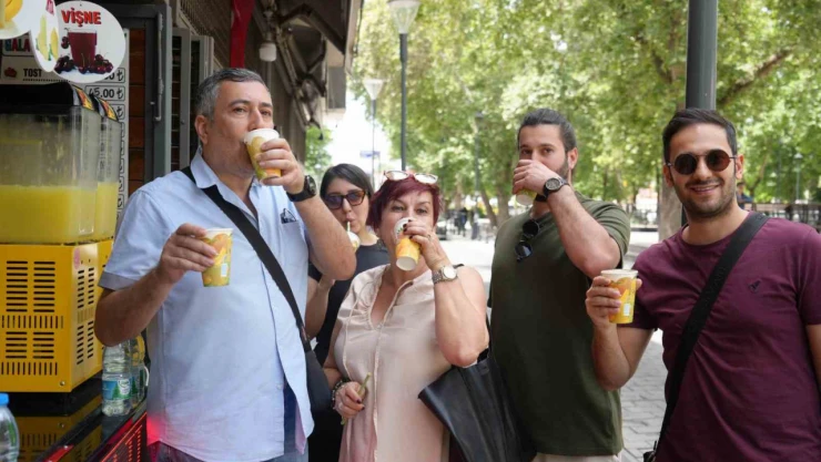 Serinlemenin yanı sıra vitamine olan ihtiyaçlarından dolayı atom içeceğe yöneldiklerini belirten Mehmet Ali ve Semra Çoban, “Almanya’da yaşıyoruz. Her sene Gaziantep’e geliyoruz. Genellikle de sıcak aylarda geldiğimiz için taze sıkım içecekleri tüketiyoruz. Hem sıcaklık hem de vitamine olan ihtiyacımız bizi bu içeceklere yöneltiyor” diye konuştu.