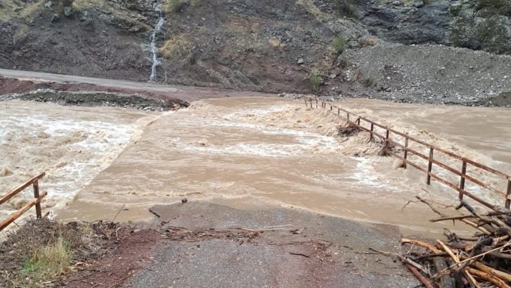 - Sincik'te dere taştı, köprü suda kayboldu