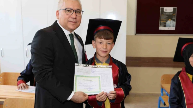 Sivas Valisi Dr. Yılmaz Şimşek, şehir merkezine 50 kilo metre mesafedeki Gaziköy’de bulunan Şehit Ömer Yıldırım İlkokulunda düzenlenen karne törenine katılarak köy okulunda ki öğrencilerin karne sevincine ortak oldu.