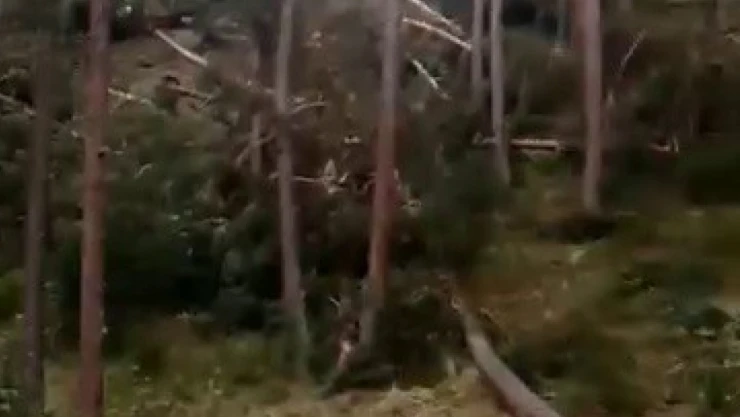 Sivas’ta dün akşam etkili olan gök gürültülü sağanak yağmur hayatı olumsuz etkiledi. Yağmur ile birlikte rüzgar da etkili olurken, Gemerek ilçesinde hortum oluştu. Hortum, Çat ormanındaki ağaçları kökünden söktü. Birçok ağacın devrildiğini gören vatandaşlar hayrete düşerken, hortumun yol açtığı tahribat kameraya yansıdı.