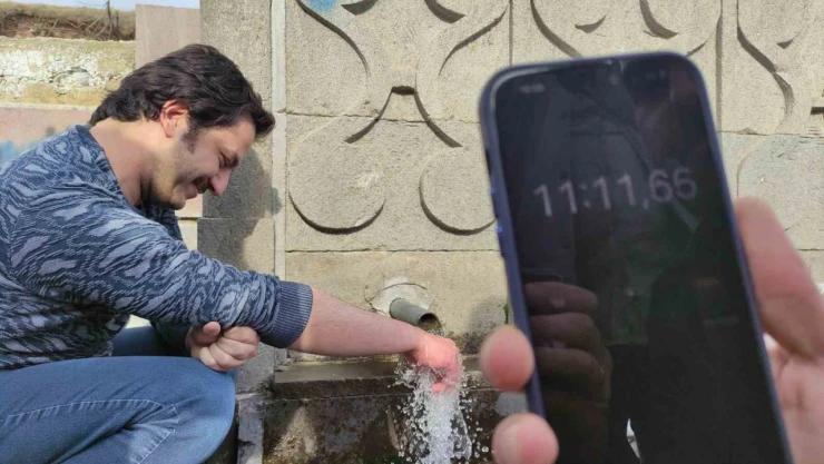 Ardahan Vali Yardımcısı Mustafa Berat Kasımoğlu, 2 bin 550 rakımlı Ilgar Dağı geçidinde, soğuk pınar çeşmesinde buz gibi akan suyun altında elini 20 dakika tutarak rekor kırdı.