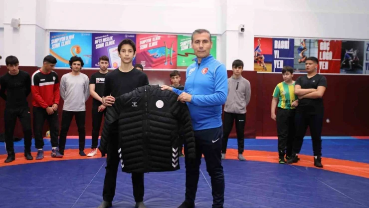 Gençlik ve Spor Bakanlığı tarafından güreş sporcularına gönderilen spor malzemeleri Gençlik ve Spor İl Müdürü Fikret Keleş tarafından dağıtıldı.