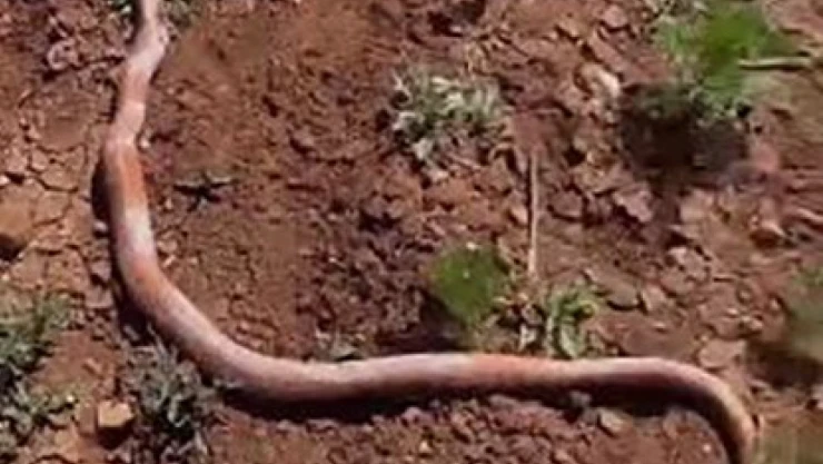Elazığ'da su kuyusu için kazı yapılırken toprağın dibinden çıkan yaklaşık 2 metrelik yılan paniğe neden oldu.