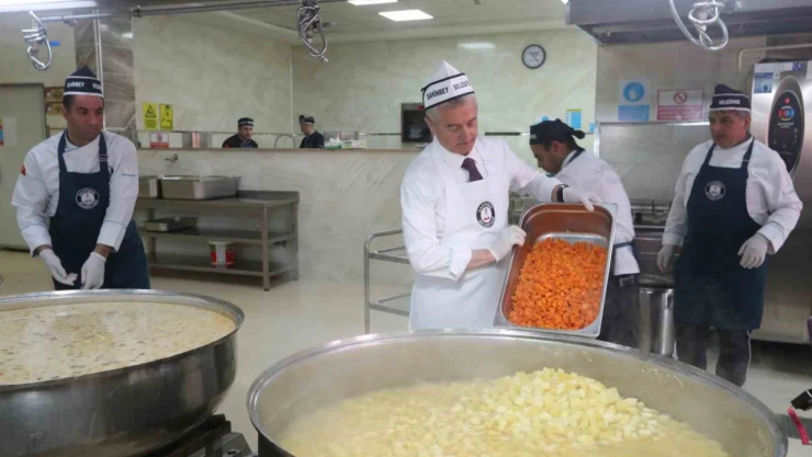 Şahinbey Belediye Başkanı Mehmet Tahmazoğlu, Şahinbey Belediyesi'nin aşevinde önlüğünü takıp, ihtiyaç sahibi vatandaşlar için kendi elleriyle yemek yaptı.
