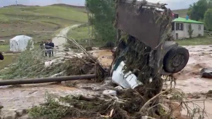 - Tekman'da yağmur ve dolu etkili oldu, dereler taştı
