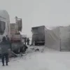 Ardahan’da kar yağışının ardından etkili olan tipi ve buzlanma nedeniyle onlarca tır yollarda kaldı.