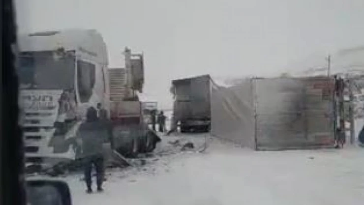 Tipi ve buzlanma nedeniyle tırlar mahsur kaldı