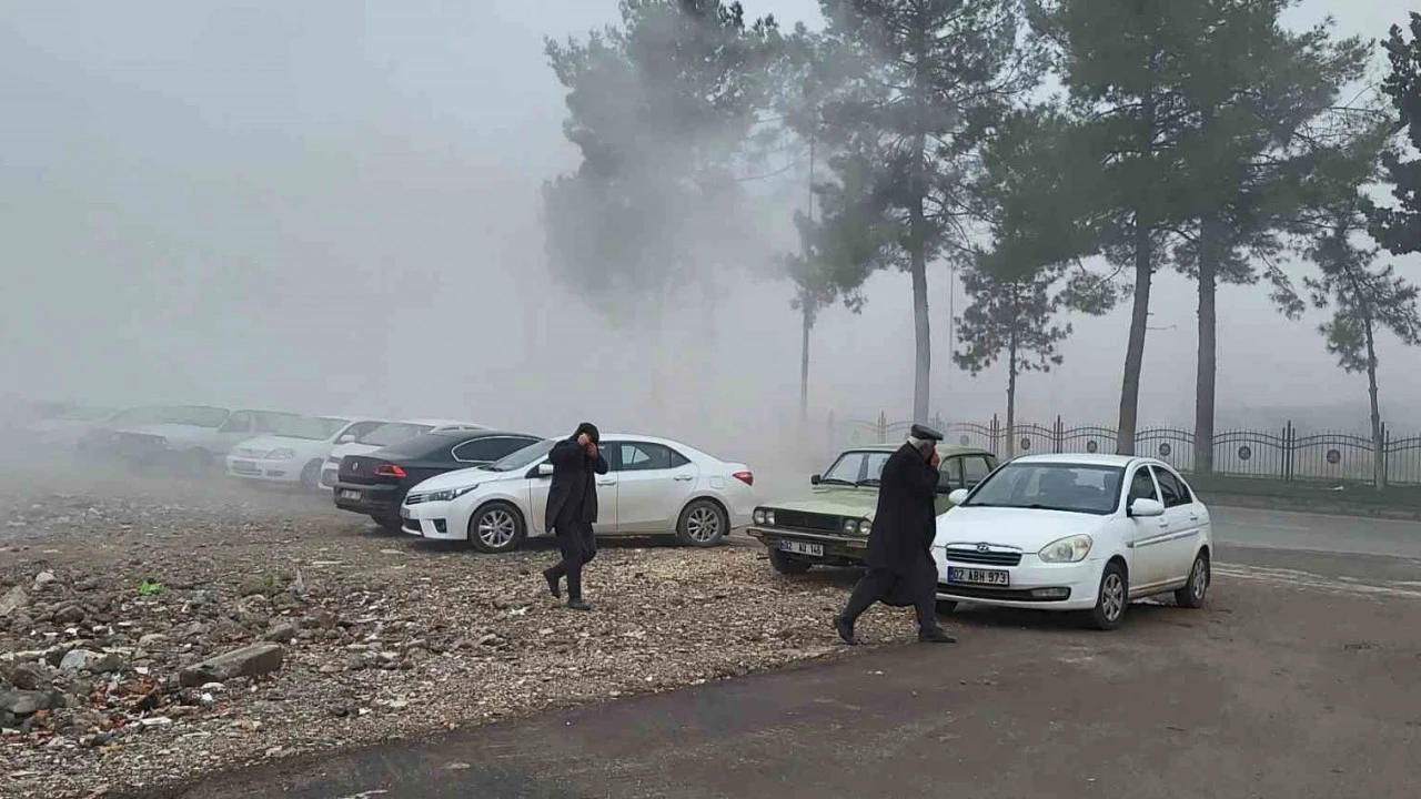 Adıyaman’da yıkılan binanın çıkardığı toz bulutu nedeniyle trafikte göz gözü görmedi. Araçlar aniden durdu, yayalar kaçarken kazaya neden oluyordu.