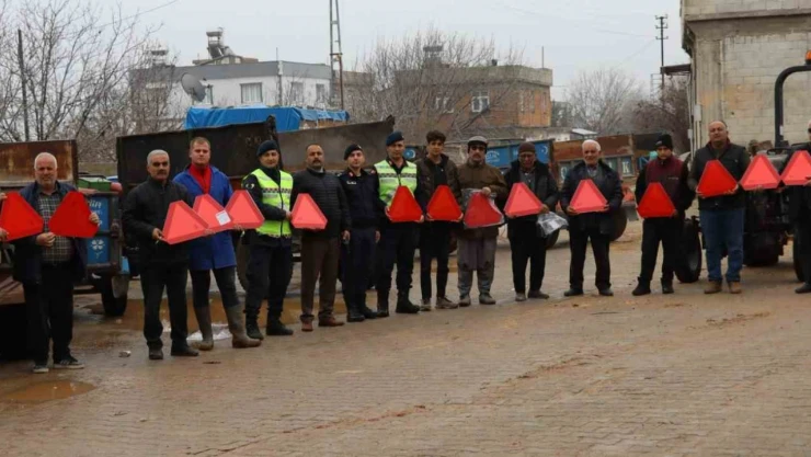 Gaziantep İl Jandarma Komutanlığına bağlı trafik jandarma ekipleri traktör sürücülerine güvenli tarım eğitimi verdi.