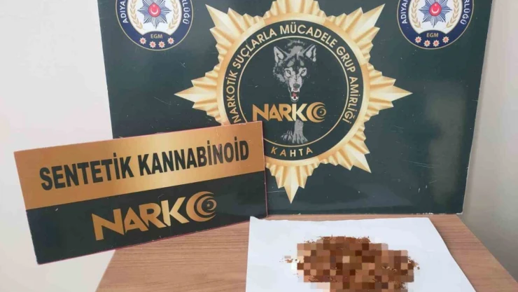 Adıyaman’ın Kahta ilçesinde, İlçe Emniyet Müdürlüğü Narkotik Suçlarla Mücadele Büro Amirliği ekipleri uyuşturucu satan ve bulunduran kişilere yönelik bir çalışma gerçekleştirdi. S.E. isimli şahsı gözaltına alan ekipler şahsın üzerinde yaptıkları aramada 8.64 gram sentetik kannabinoid maddesi ele geçirdi.