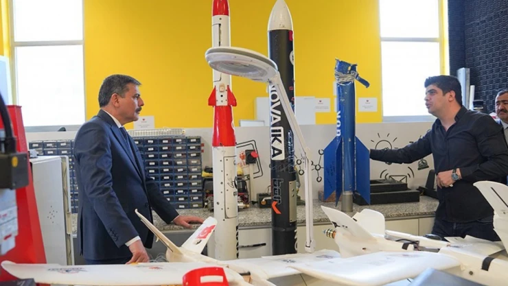 Erzurum Valisi Mustafa Çiftçi Rektör Prof. Dr. Bülent Çakmak ile birlikte Erzurum Teknik Üniversitesi 'nin (ETÜ) inovasyon merkezlerinden olan Kristal Girişimcilik Merkezi'nde incelemelerde bulundu.