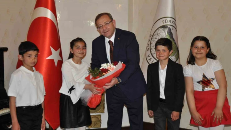 Kars’ta 23 Nisan nedeniyle temsili öğrenciler Valilik makamını ziyaret etti.
