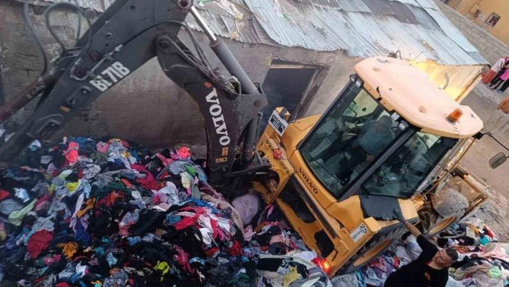 Van’ın Tuşba ilçesine bir depoda çıkan yangında korkulu anlar yaşanırken, 30 ton temizlik bezi, 210 koli cam suyu yandı.
