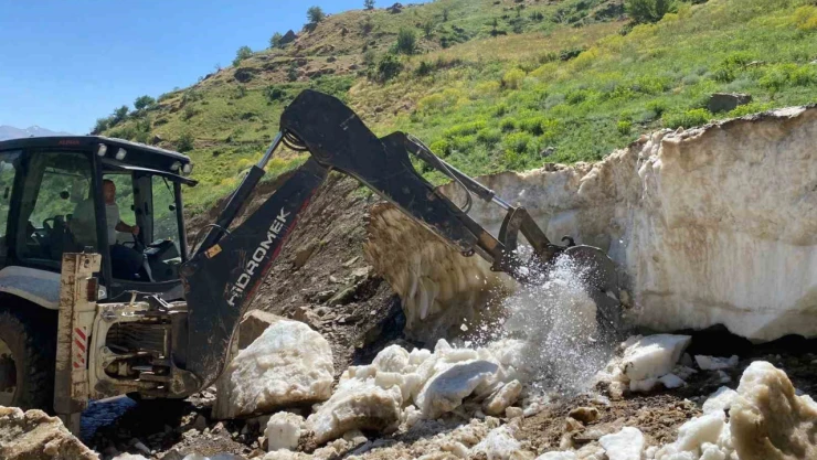 Van’ın Bahçesaray ilçesinde Temmuz ayının son haftasında karla mücadele çalışması devam ediyor.