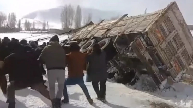 Edinilen bilgiye göre, kaza, Gürpınar ilçesinde bağlı Tutmaç Mahallesi yakınlarında meydana geldi. Sürücüsünü ismi öğrenilemeyen saman yüklü kamyon, yolun karlı ve buzlu olmasından dolayı kanala düşerek yan yattı. Yara almadan kurtulan sürücünün imdadına mahalle sakinleri yetişti. Yanlarına getirdikleri ipleri kamyona bağlayan vatandaşlar, hep birlikte iplere asılarak saniyeler içerinde düzelttiler. Bu görüntüler kısa sürede sosyal medyada takdir topladı.