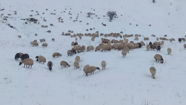 Öte yandan yine Aşkale’nin Sarıbaba köyünde koyunculuk yapan çiftçi de erken bastıran kar yağışı nedeniyle hayvanlarının kışlık yiyeceğini tam temin edememesi neticesinde karla kaplı dağlarda koyunlarını otlattı.