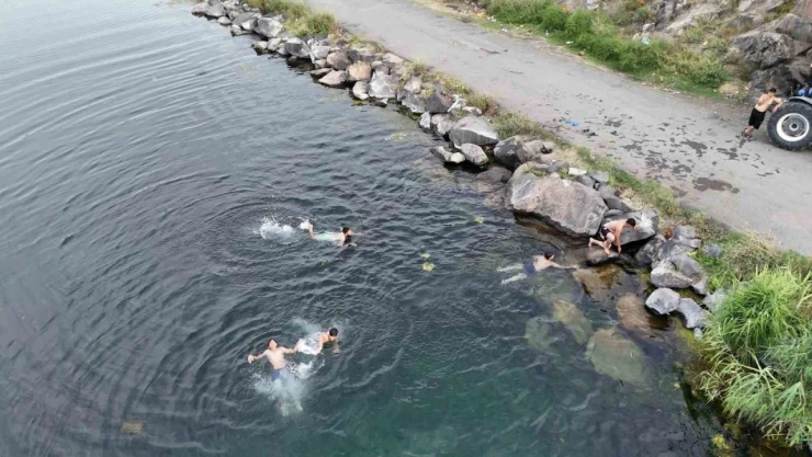 Yaz sıcağında serinlemek isteyenler soluğu Karasu Çayı'nda alıyorlar