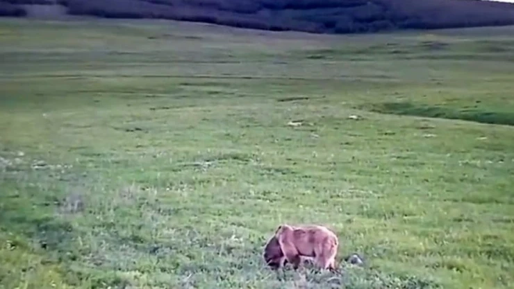 Göle ilçesine bağlı Yiğitkonağı köyü mera alanında karnını yeşeren otlarla doyurmaya çalışan bozayı, Özgür Açıkyıldız tarafından cep telefonu kamerayla kayıt altına alındı. Ardahan’dan Göle ilçesine seyahat eden Açıkyıdız, merada otla beslenen boz ayıyı görünce aracını durdurarak o anları cep telefonu kamerası ile görüntüledi.