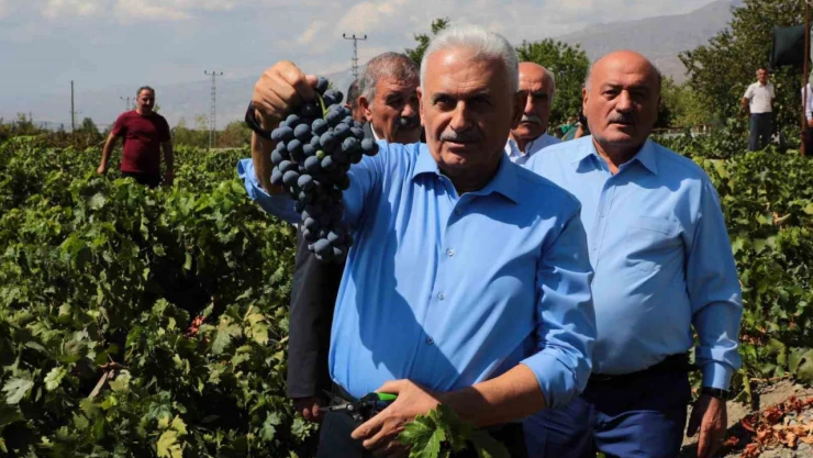 Türk Devletleri Teşkilatı Aksakallar Konseyi Başkanı Binali Yıldırım memleketi Erzincan'da Cimin üzümünün hasadına katıldı.
